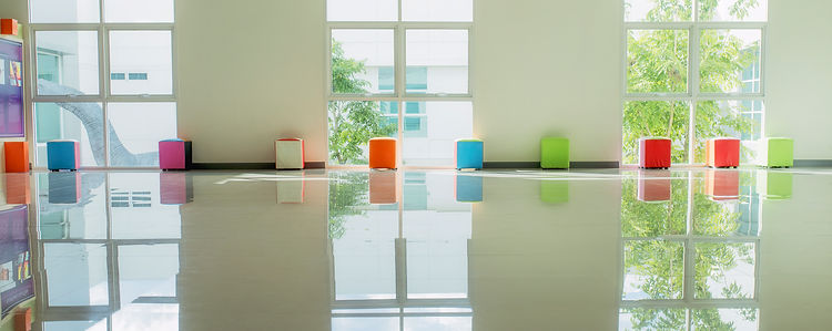 The high gloss finish of epoxy floors reflects light and improves lighting